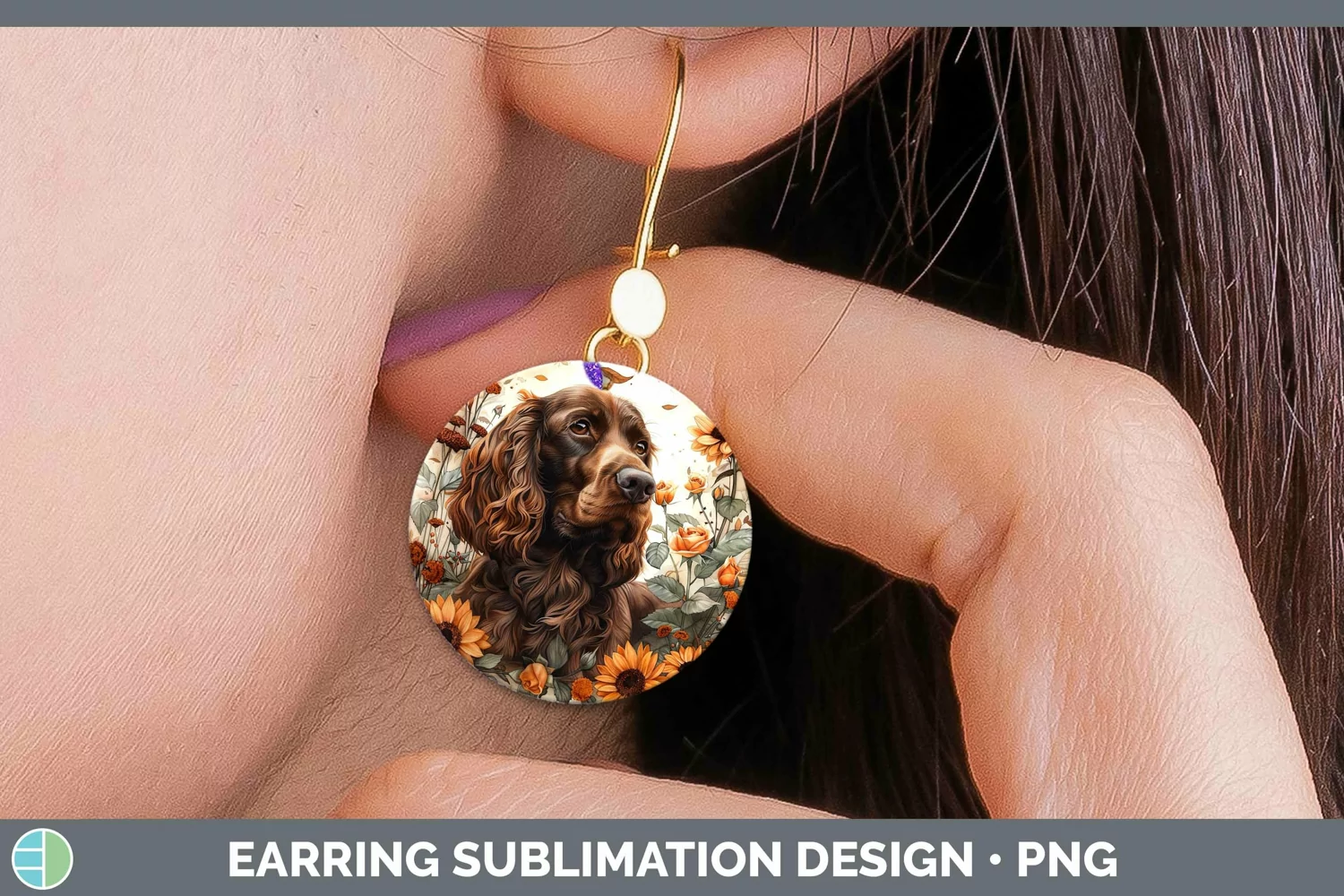 Autumn Sunflower Dog Cocker Spaniel Round Earrings Sublimati