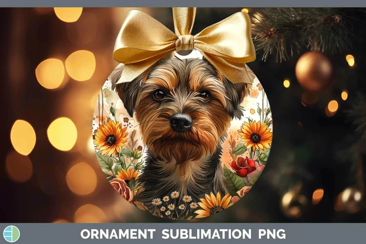Autumn Sunflower Dog Yorkshire Terrier Ornament Sublimation
