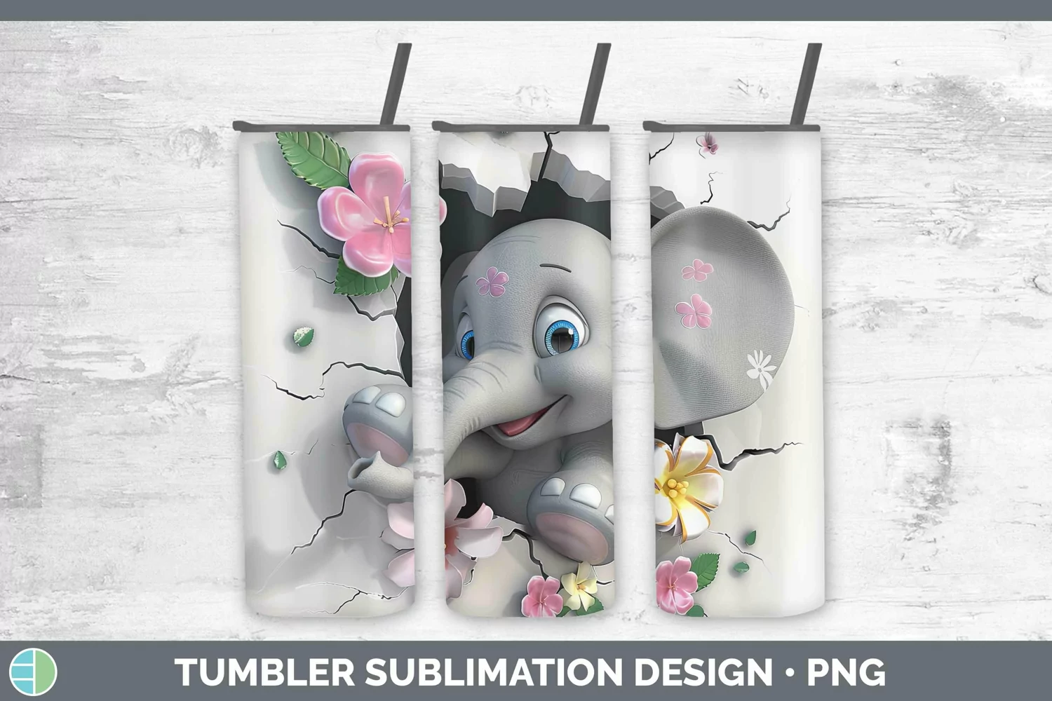 Similar Design Products to 3D Hole in the Wall Elephant Tumbler Sublimation 20 oz Skinn