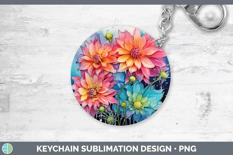 Neon Flowers Dahlia Keychain Sublimation Keyring Designs
