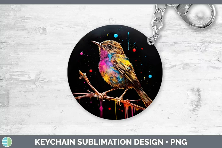 Neon Birds Wren Keychain Sublimation Keyring Designs