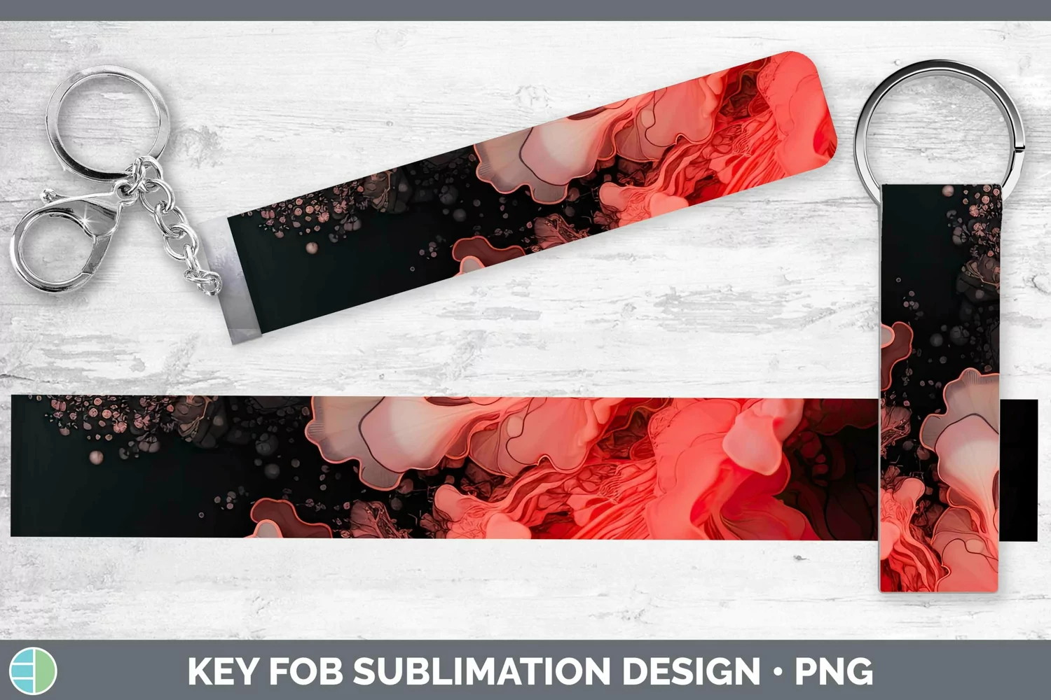 Neon Splash Red Key Fob Sublimation Wristlet Designs