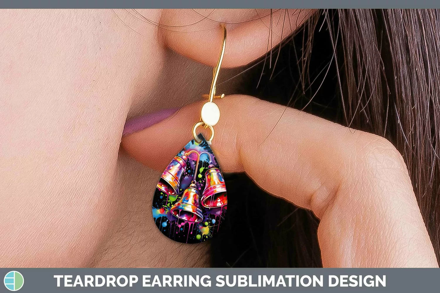Neon Christmas Jingle Bells Teardrop Earrings Sublimation Ea