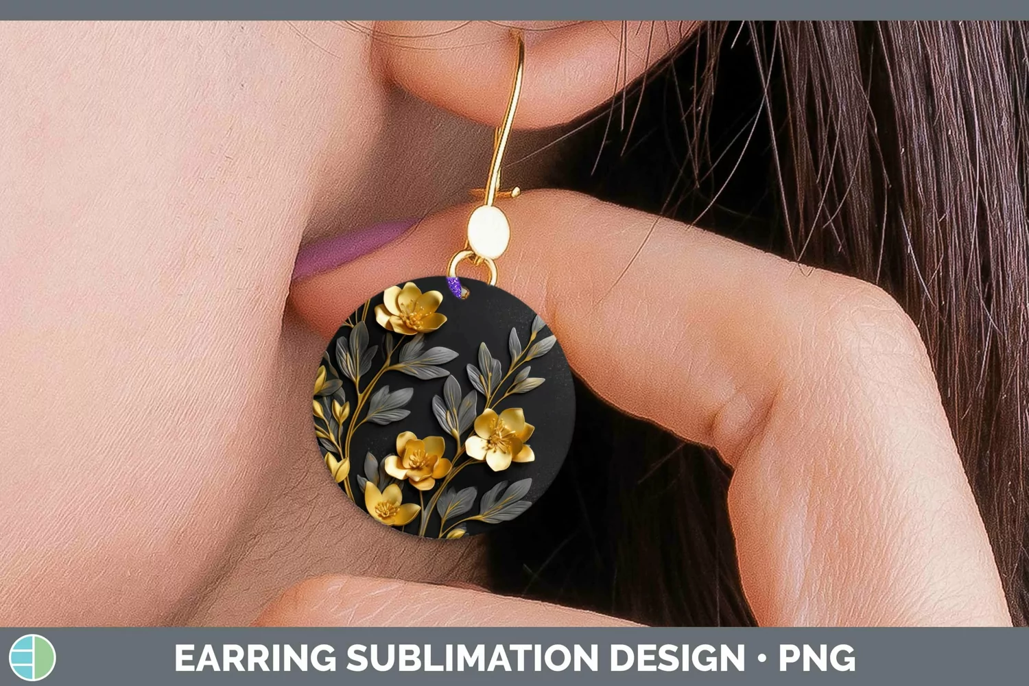 Similar Design Products to 3D Black and Gold Freesia Round Earrings Sublimation Earring