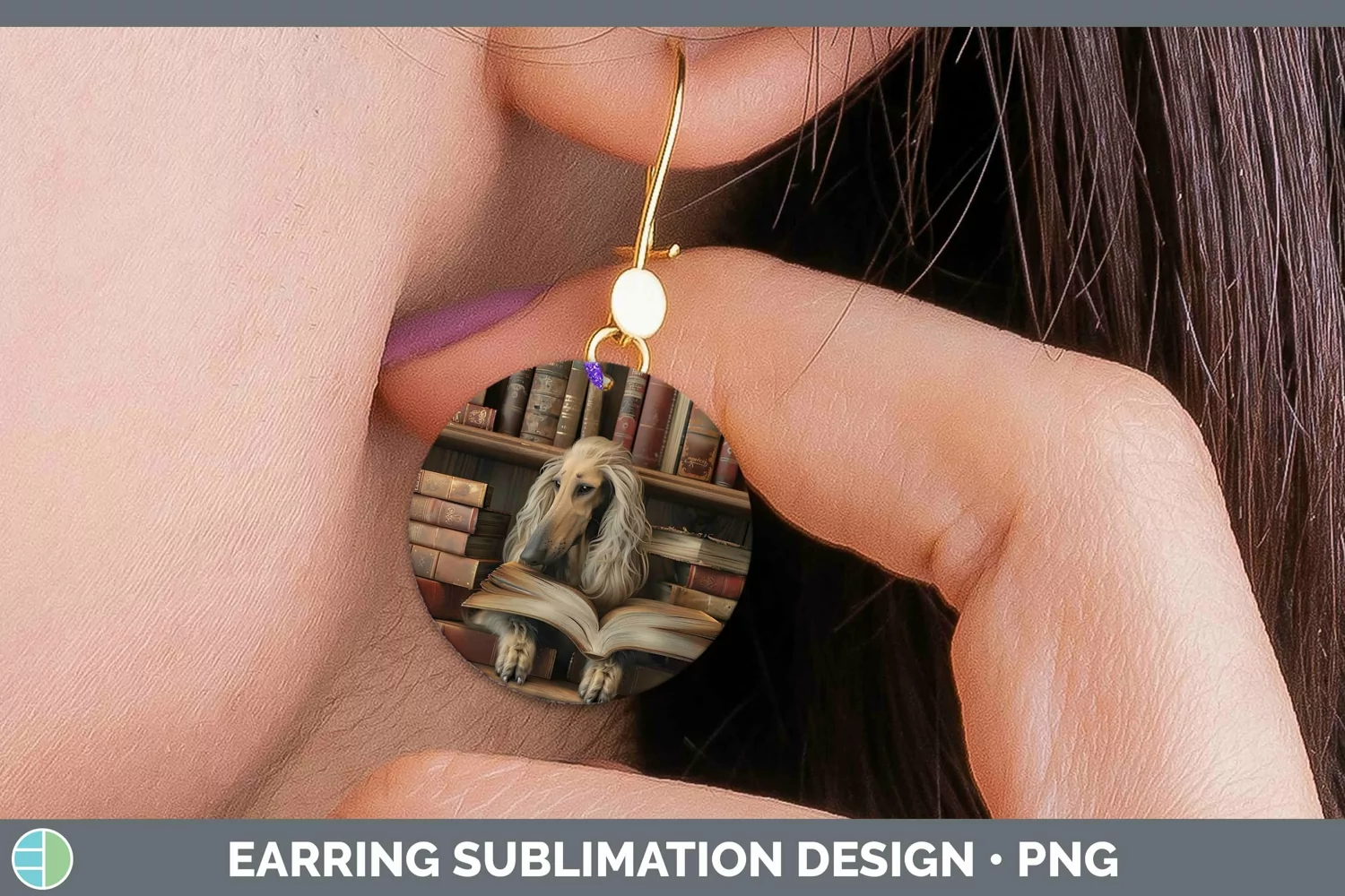 Similar Design Products to 3D Books Afghan Hound Dog Round Earrings Sublimation Earring