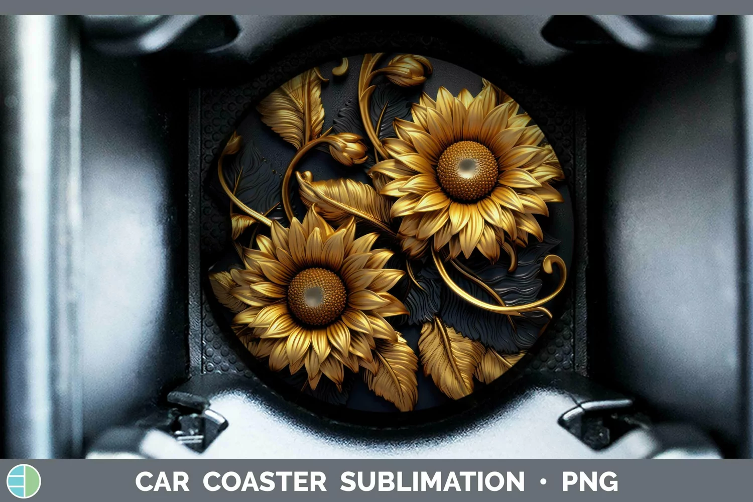 Black Gold Flowers Sunflower Car Coaster Sublimation Coaster