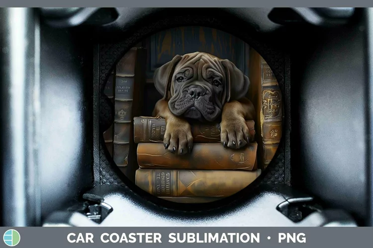 3D Books Mastiff Dog Car Coaster Sublimation Coaster Designs