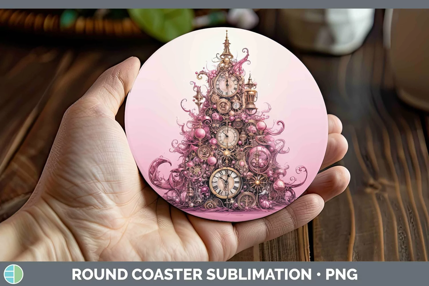 Steampunk Christmas Tree Round Coaster Sublimation Coaster
