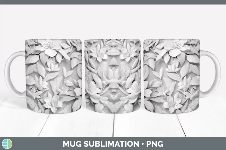 White 3D Sculpture Azalea Mug Wrap Sublimation Coffee Cup De example image 1