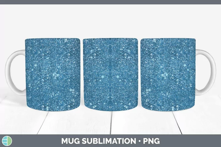 Glitter Bright Blue Mug Wrap Sublimation Coffee Cup Designs