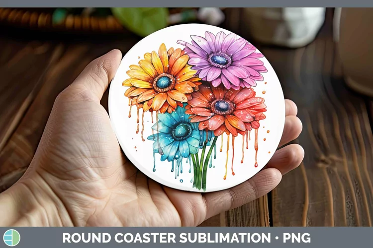 Similar Design Products to Rainbow Flowers Gerbera Daisy Round Coaster Sublimation Coas
