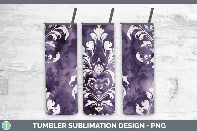 Purple Damask Tumbler Sublimation 20 oz Skinny Tumbler Desig