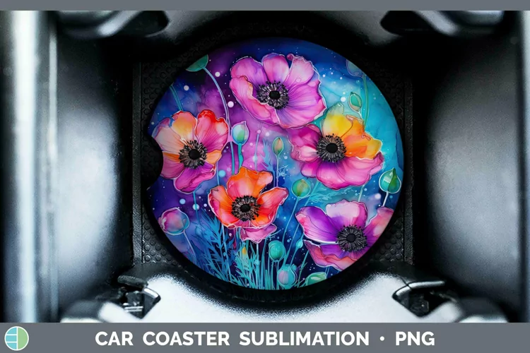 Neon Flowers Anemone Car Coaster Sublimation Coaster Designs