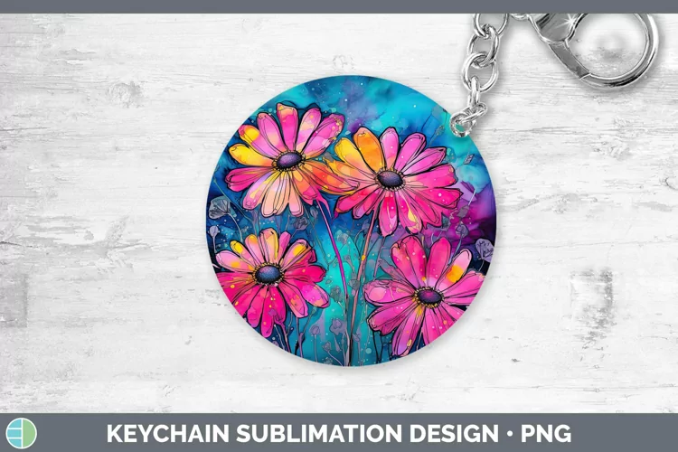 Neon Flowers Daisy Keychain Sublimation Keyring Designs