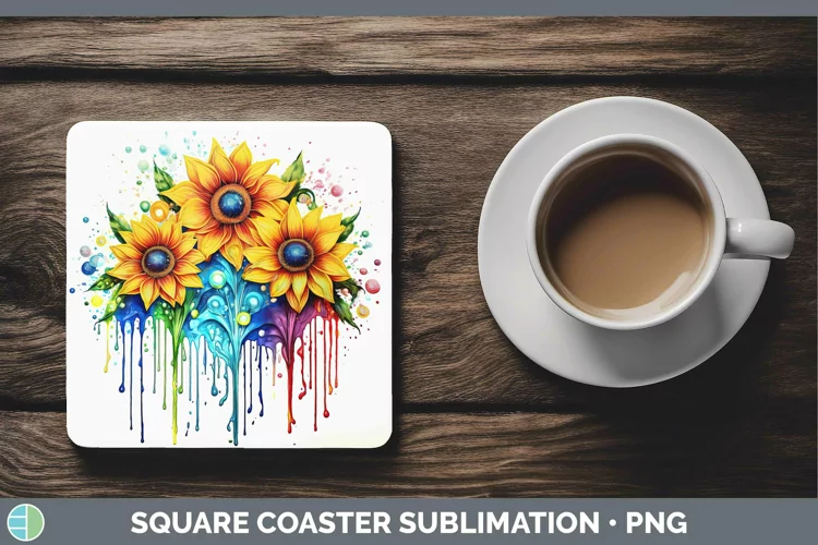 Similar Design Products to Rainbow Flowers Sunflower Square Coaster Sublimation Coaster