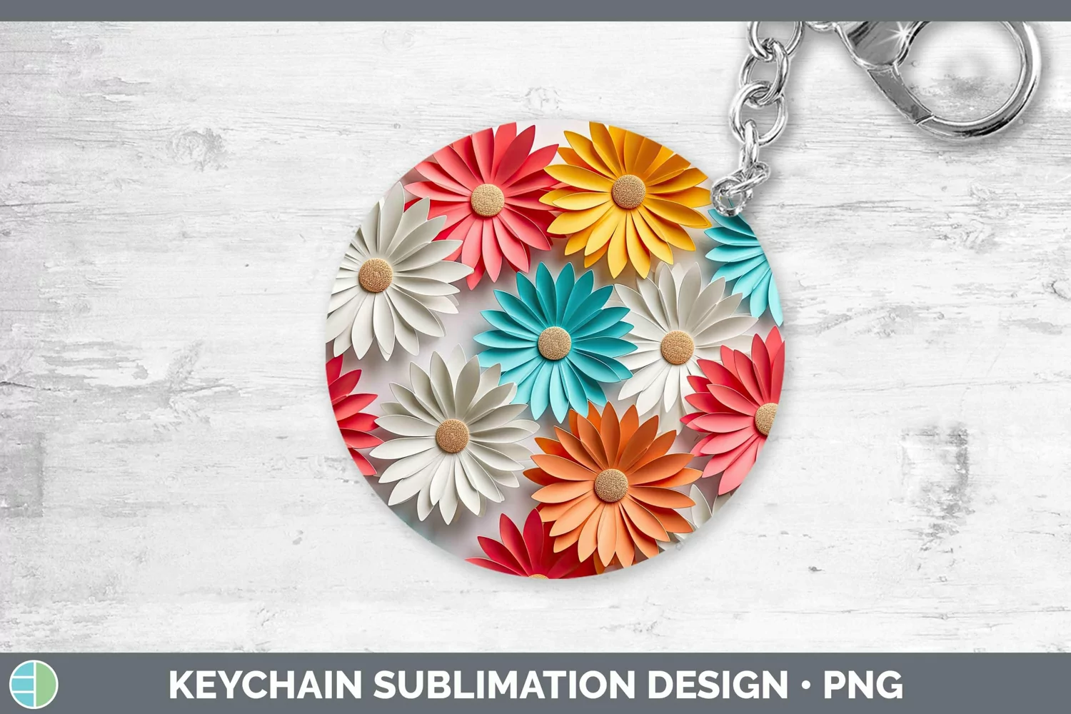 Similar Design Products to 3D Paper Flowers Daisy Keychain Sublimation Keyring Designs