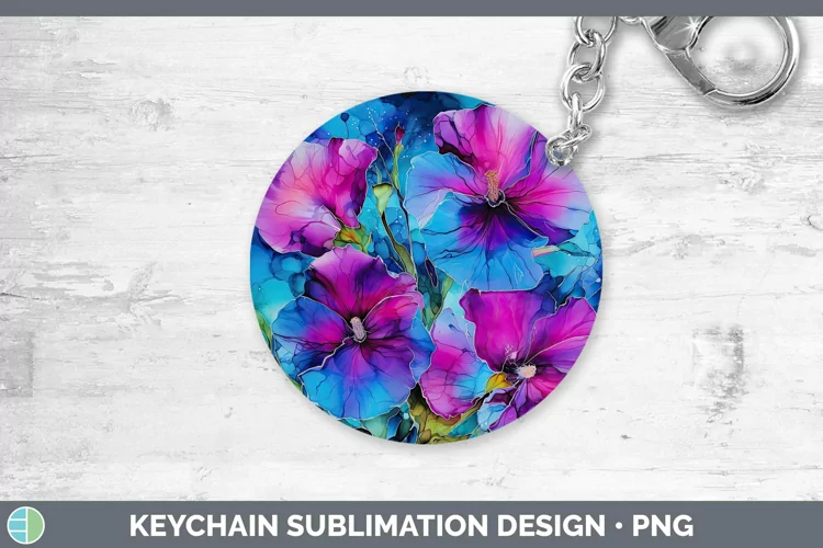 Neon Flowers Petunia Keychain Sublimation Keyring Designs