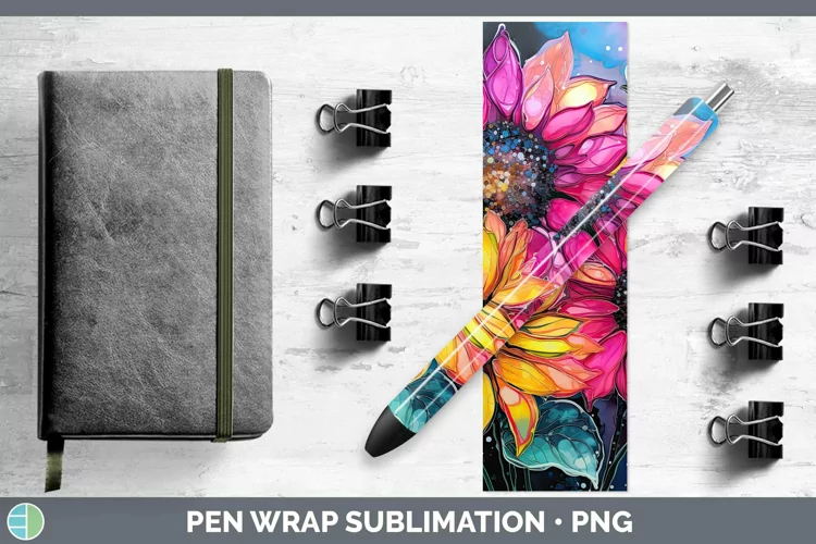 Neon Flowers Sunflower Pen Wrap Sublimation Epoxy Pen Design