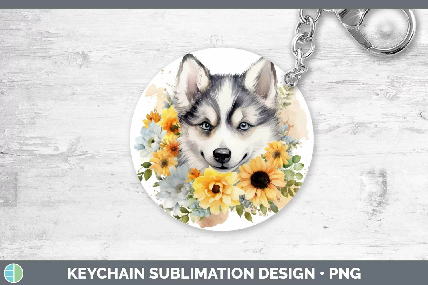 Watercolor Dogs Husky Keychain Sublimation Keyring Designs example image 1