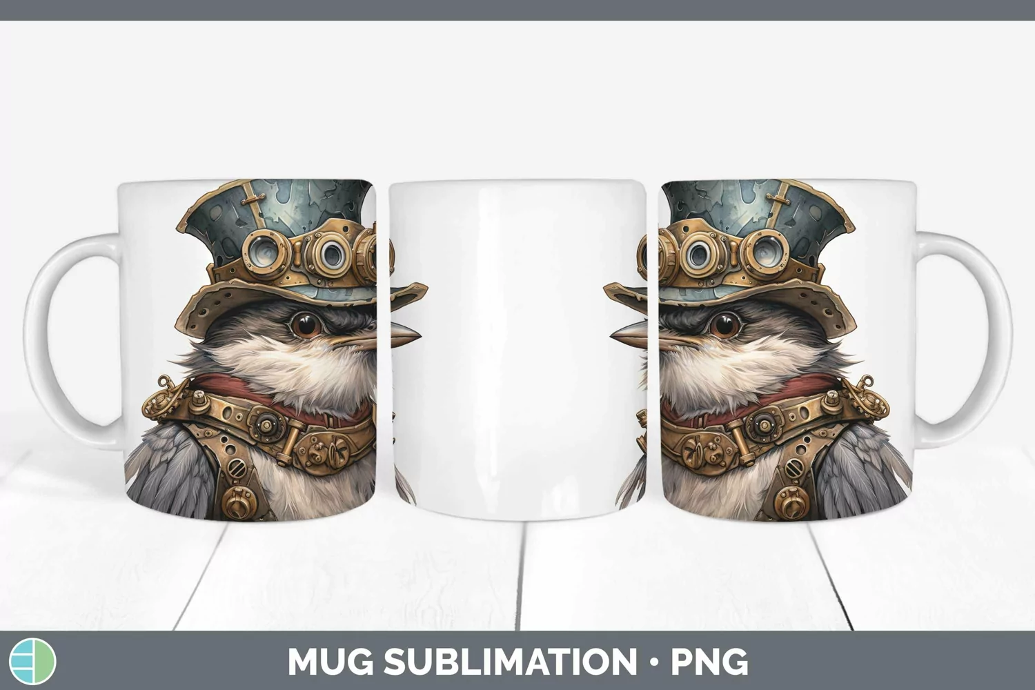 Steampunk Chickadee Mug Wrap Sublimation Coffee Cup Designs