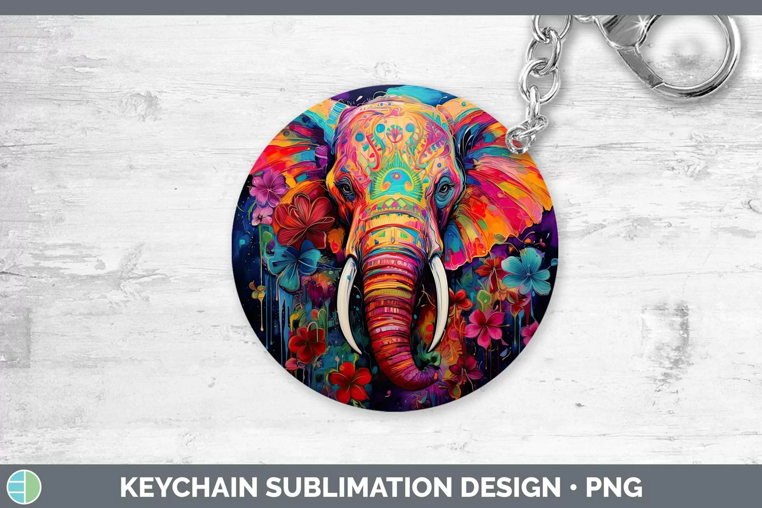 Neon Elephant Keychain Sublimation Keyring Designs