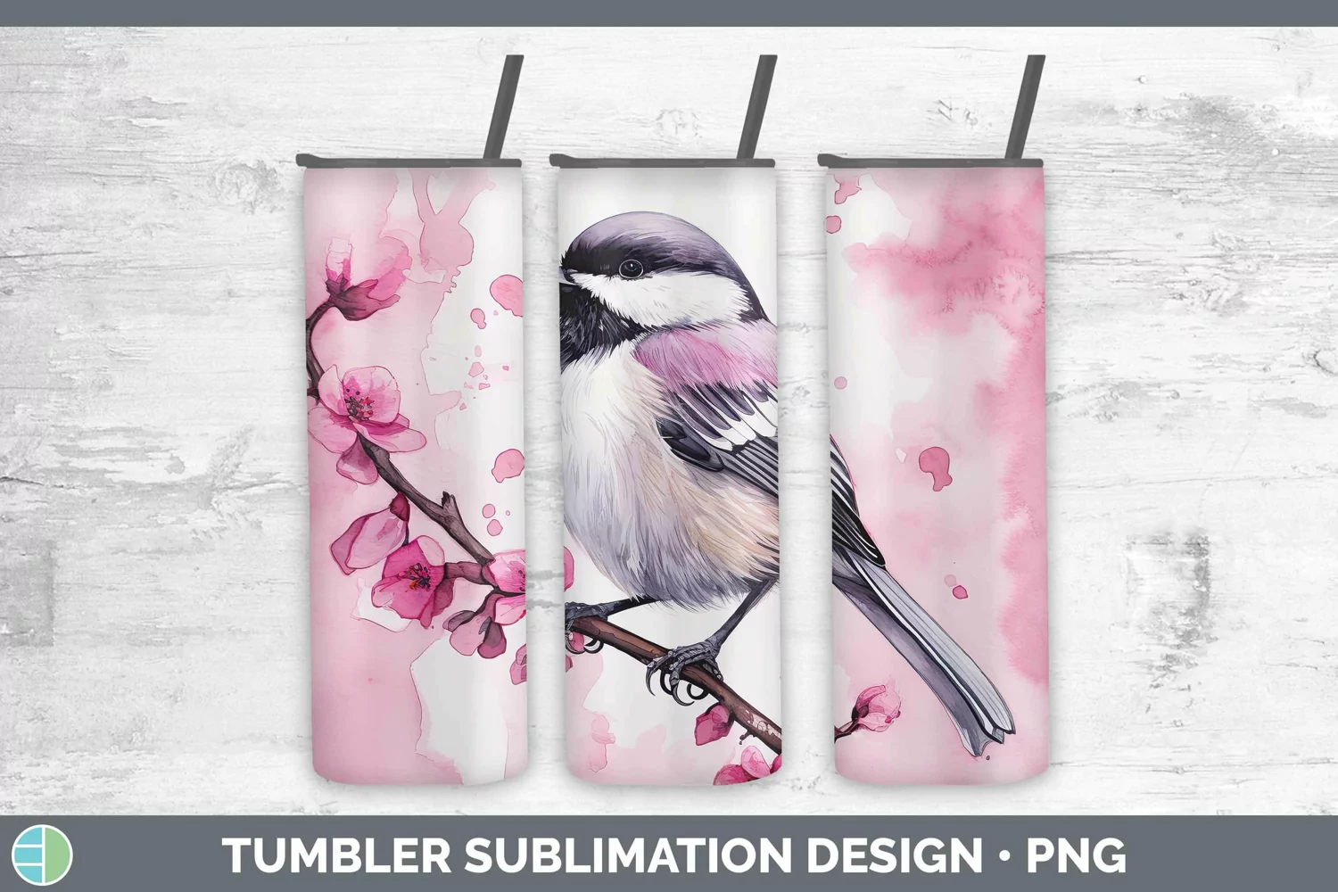 Pink Chickadee Tumbler Sublimation 20 oz Skinny Tumbler Desi