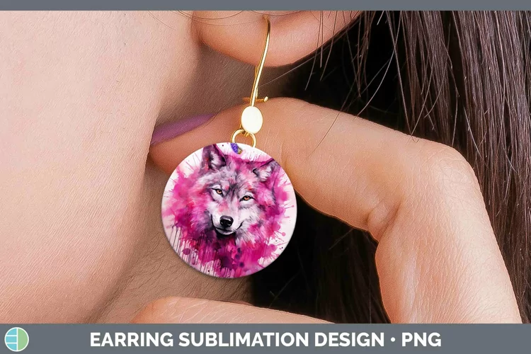 Similar Design Products to Pink Wolf Round Earrings Sublimation Earrings Designs