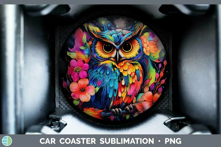 Neon Owl Car Coaster Sublimation Coaster Designs