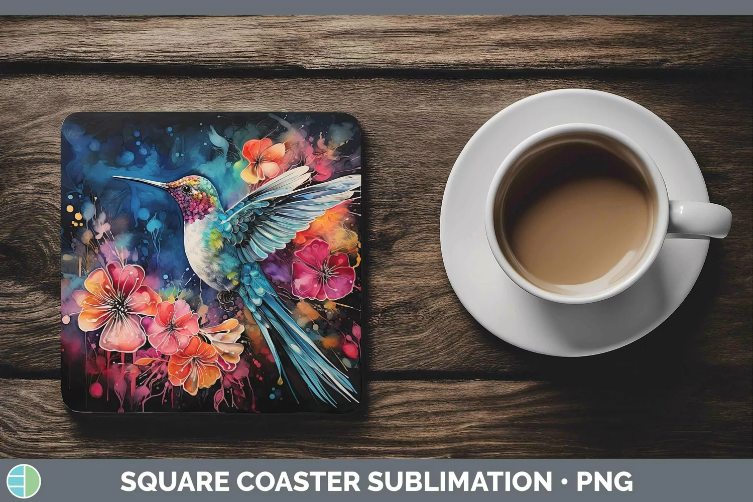 Neon Hummingbird Square Coaster Sublimation Coaster Designs