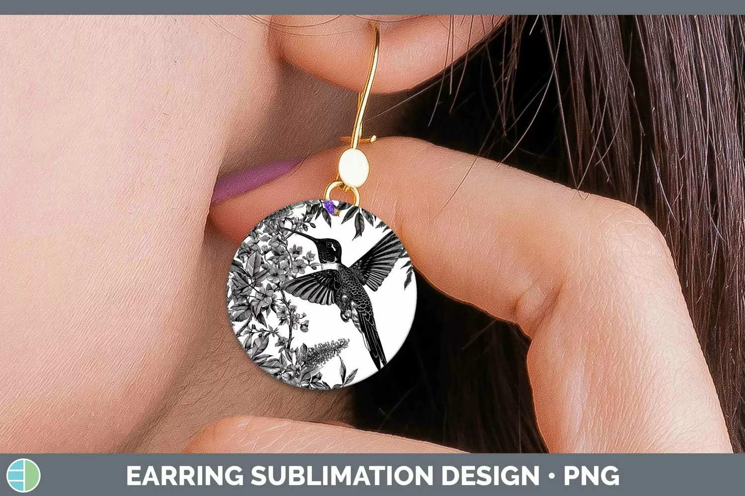 Linocut Hummingbird Round Earrings Sublimation Earrings Desi