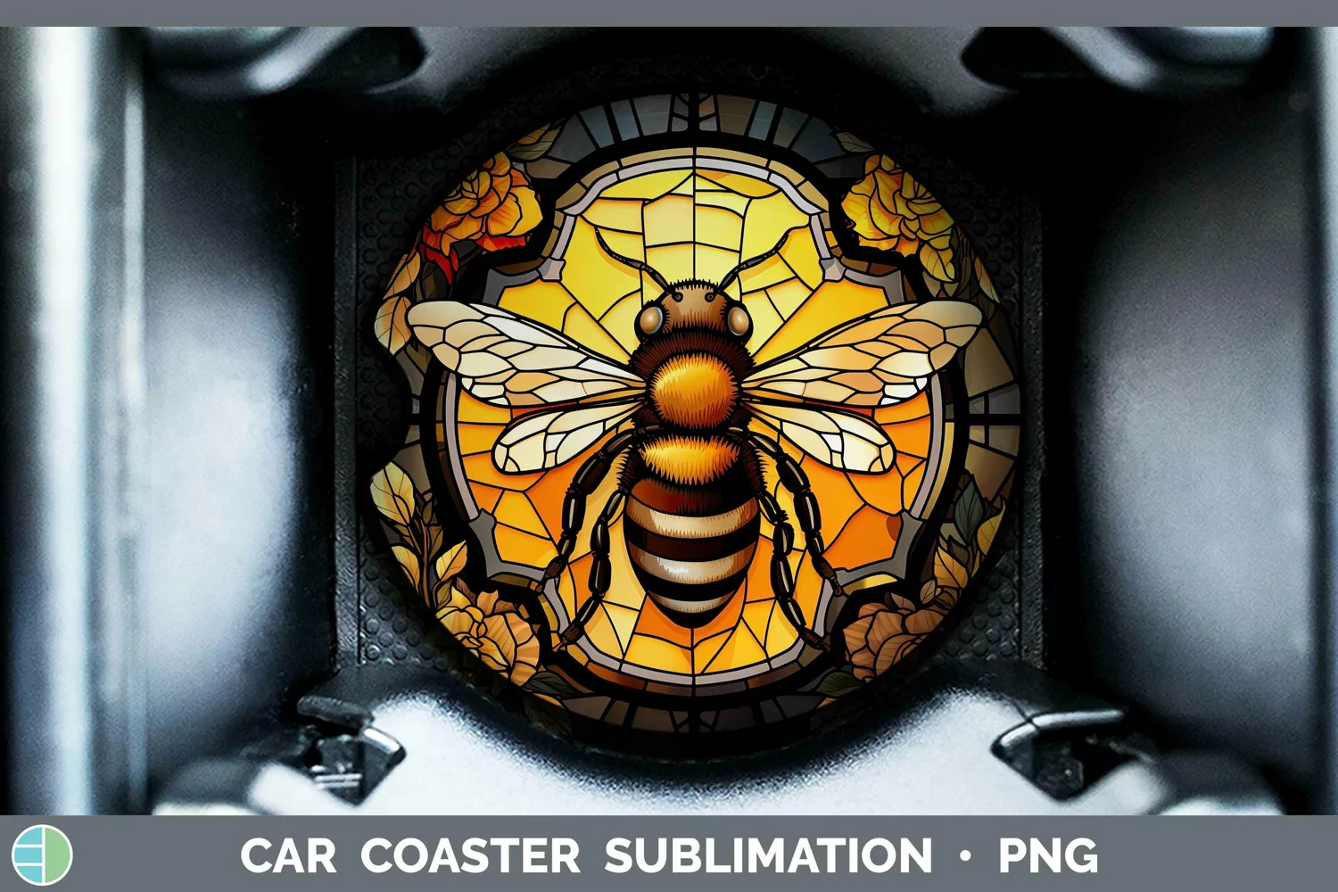 Stained Glass Bee Car Coaster Sublimation Coaster Designs