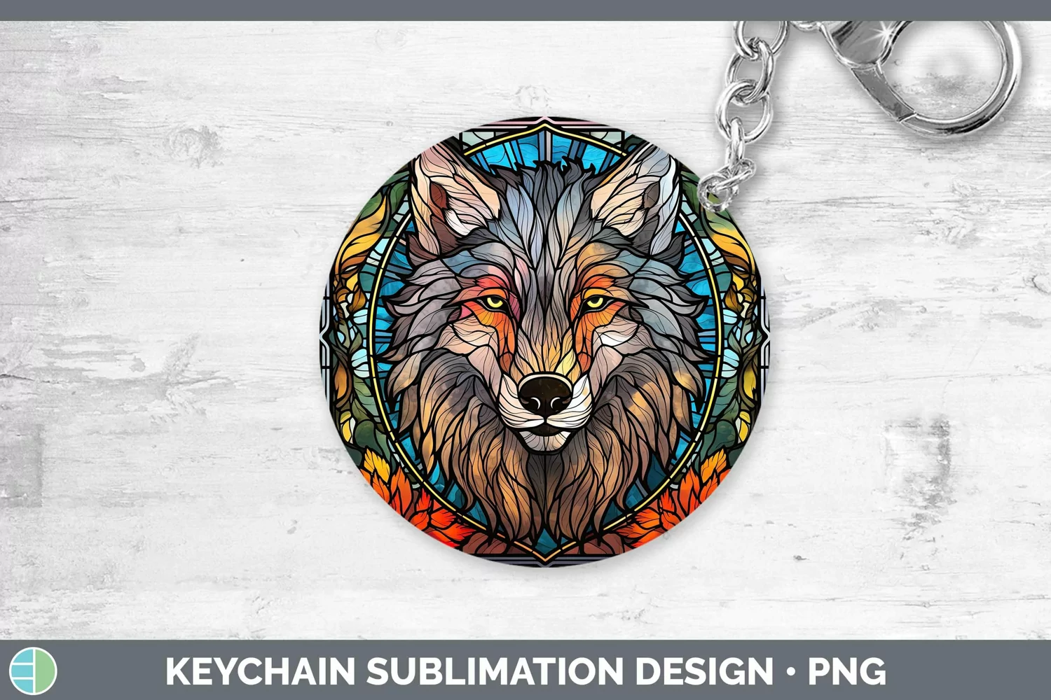 Stained Glass Wolf Keychain Sublimation Keyring Designs example image 1