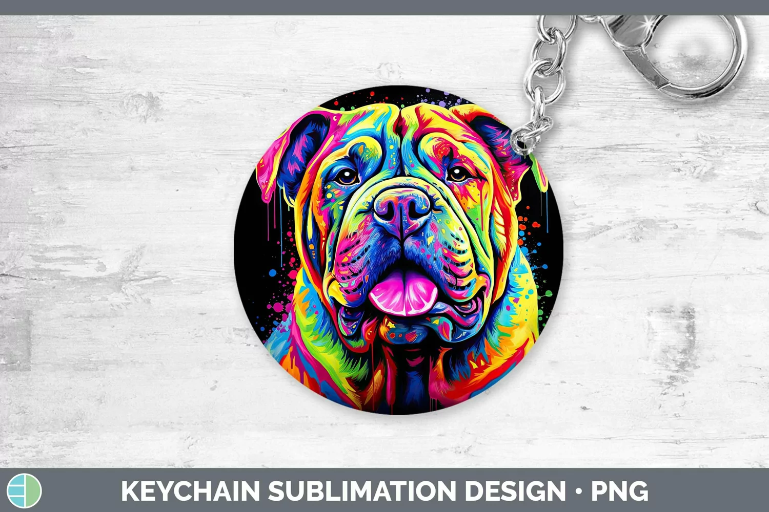 Neon Dogs Shar Pei Keychain Sublimation Keyring Designs