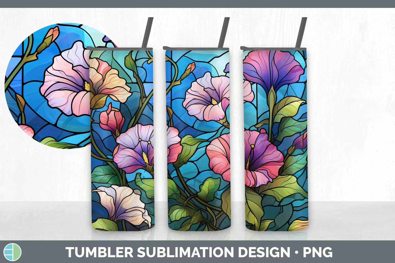Similar Design Products to Stained Glass Flowers Morning Glory Tumbler Sublimation 20 o