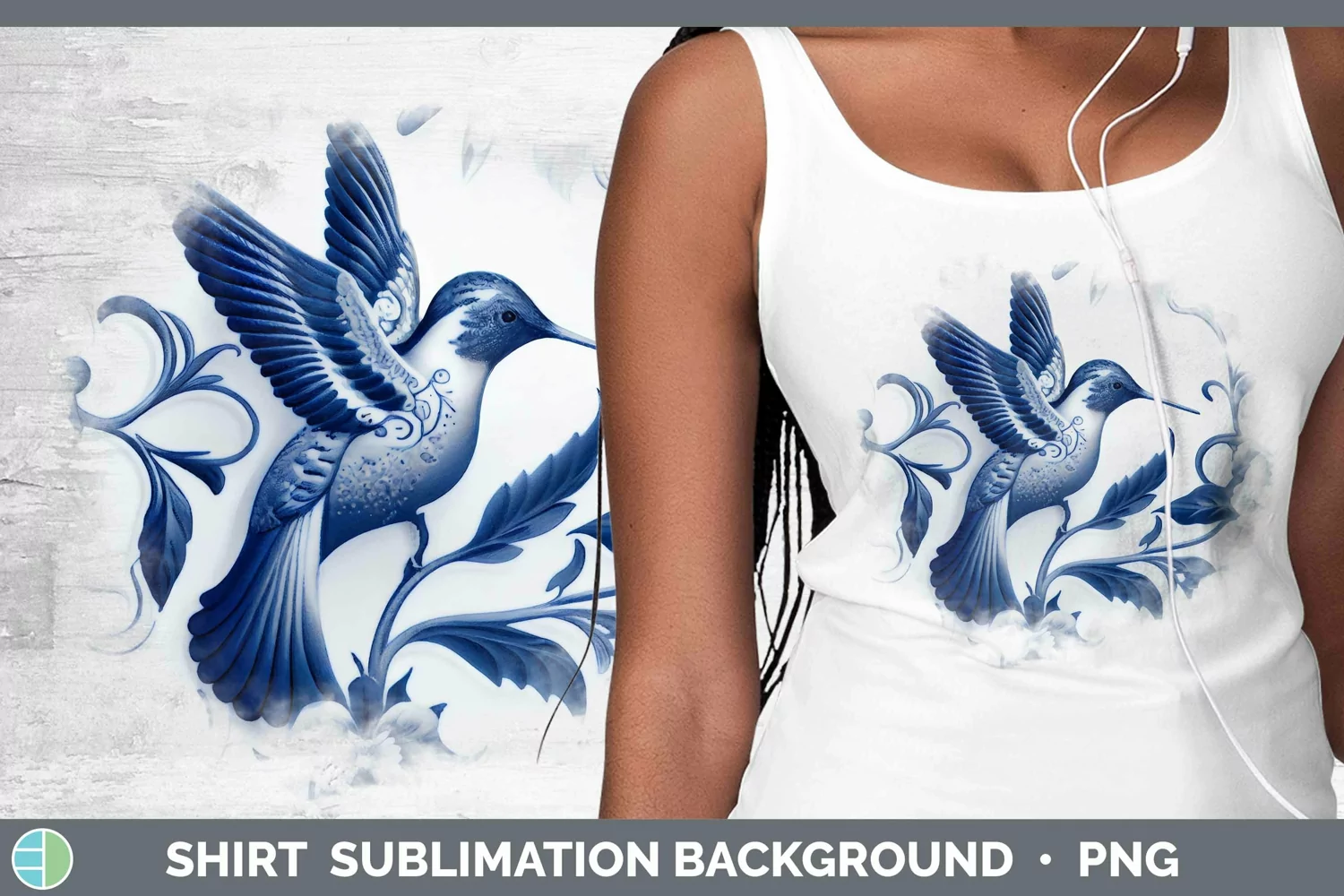 Blue and White Porcelain Hummingbird Shirt Sublimation