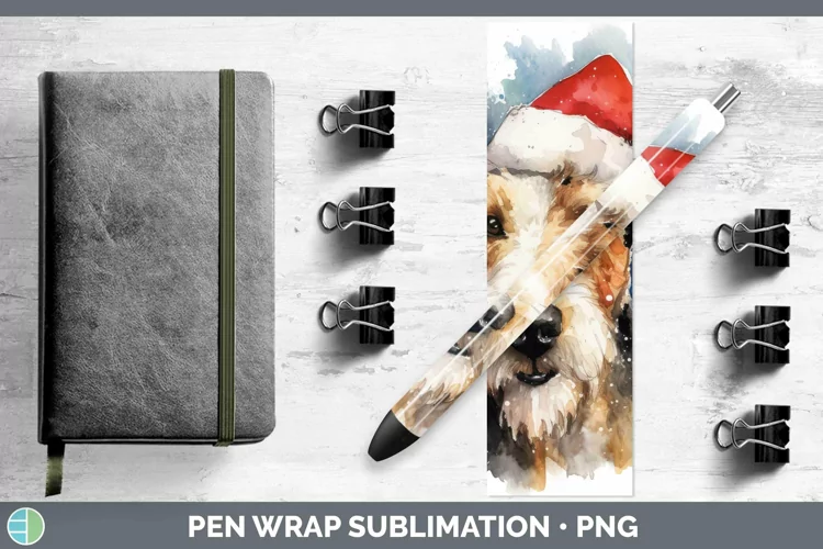 Santa Hat Fox Terrier Dog Pen Wrap Sublimation Epoxy Pen Des example image 1