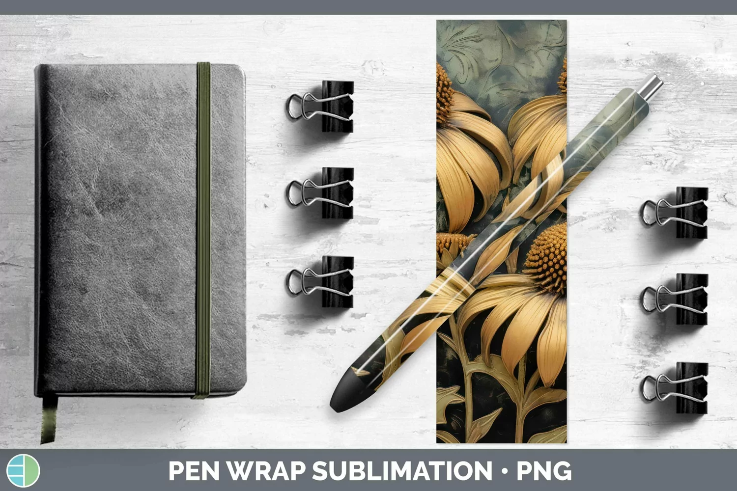 3D Black and Gold Coneflower Pen Wrap Sublimation Epoxy Pen