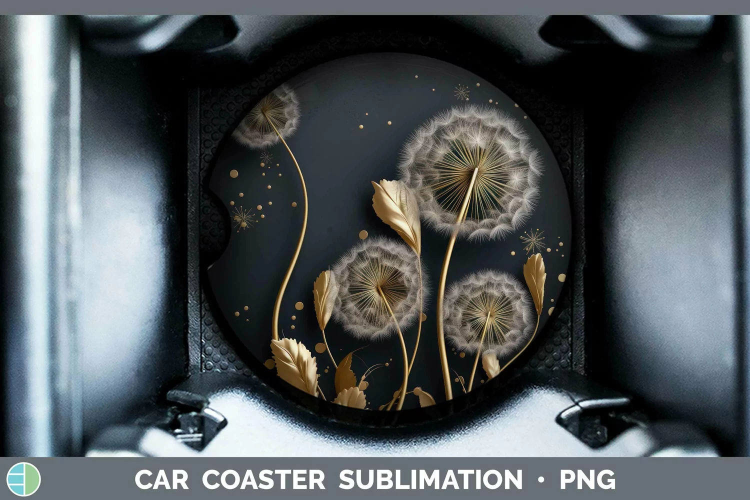 3D Black and Gold Dandelion Car Coaster Sublimation Coaster