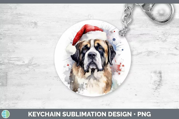 Santa Hat Saint Bernard Keychain Sublimation Keyring Designs example image 1