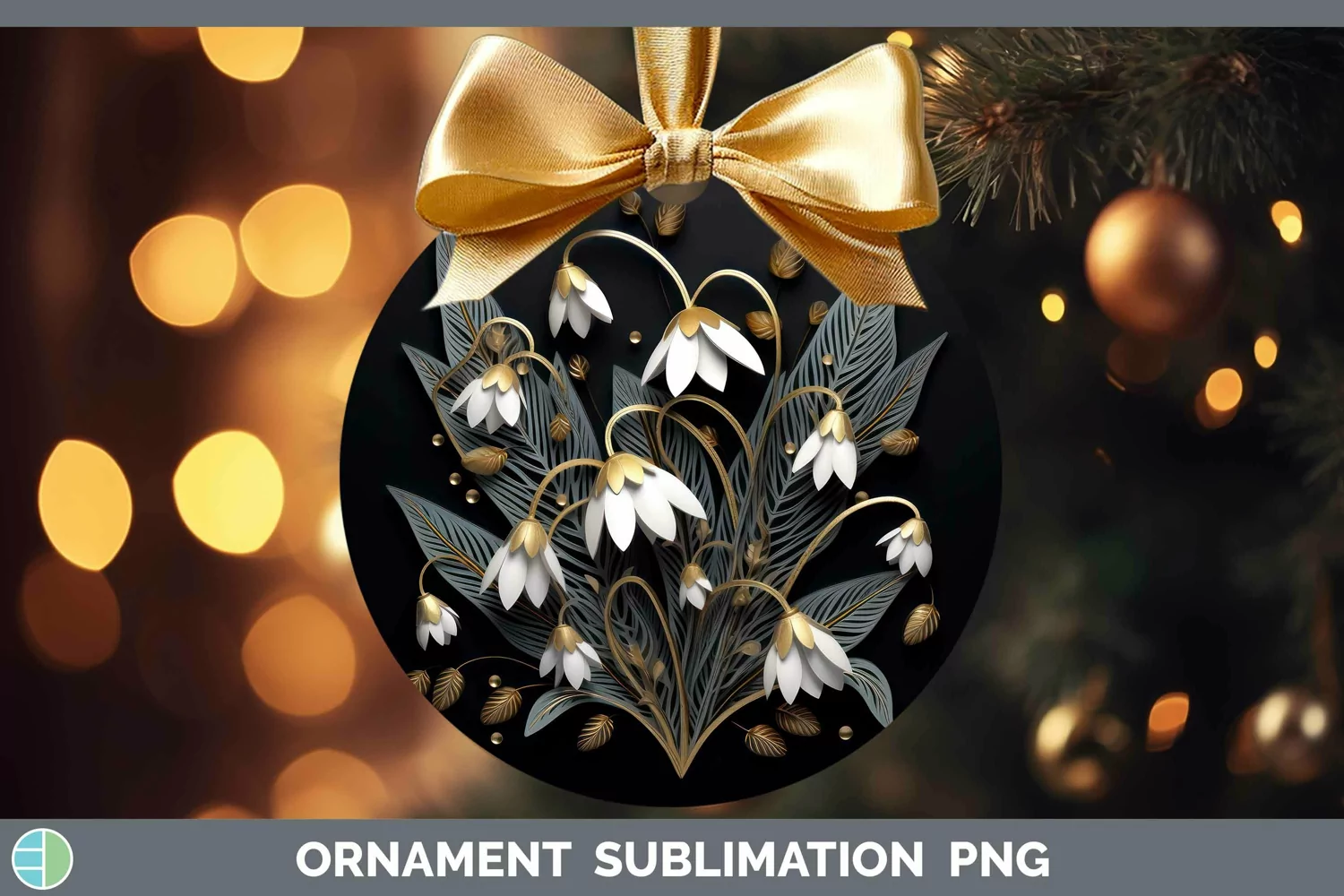 3D Black and Gold Snowdrop Ornament Sublimation Bauble Desig