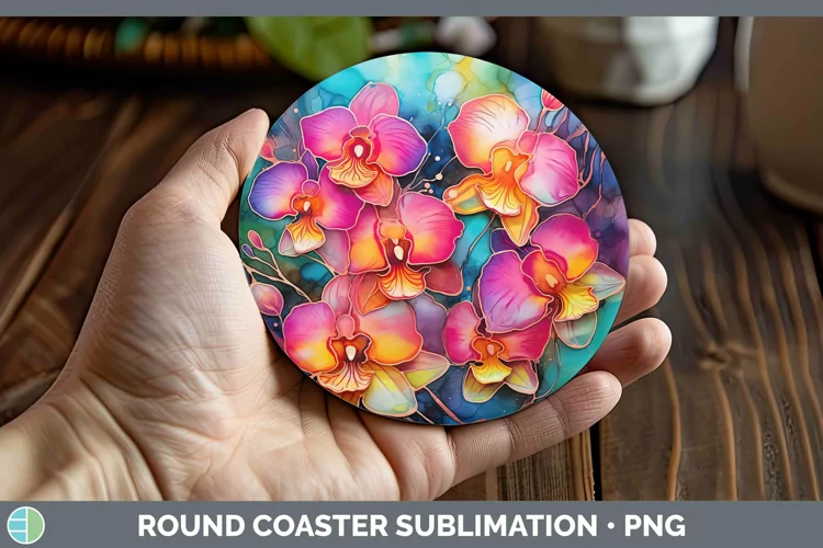 Neon Flowers Orchid Round Coaster Sublimation Coaster Design