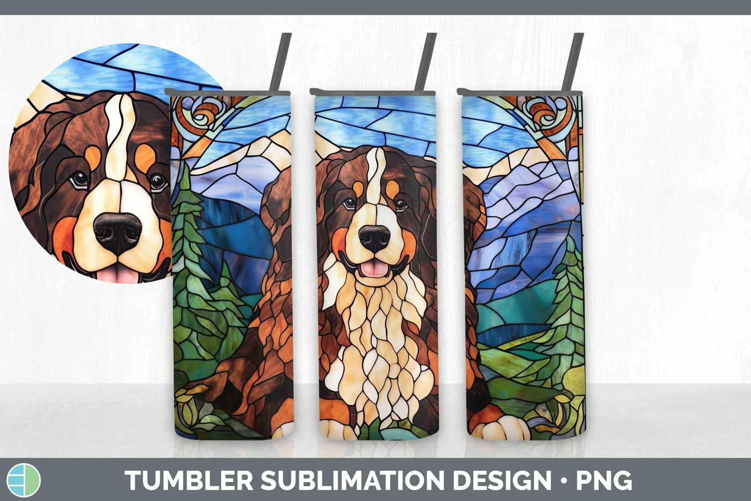 Similar Design Products to Stained Glass Bermese Mountain Dog Tumbler Sublimation 20 oz