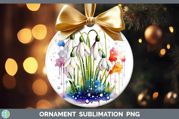 Watercolor Flowers Snowdrop Ornament Sublimation Bauble Desi