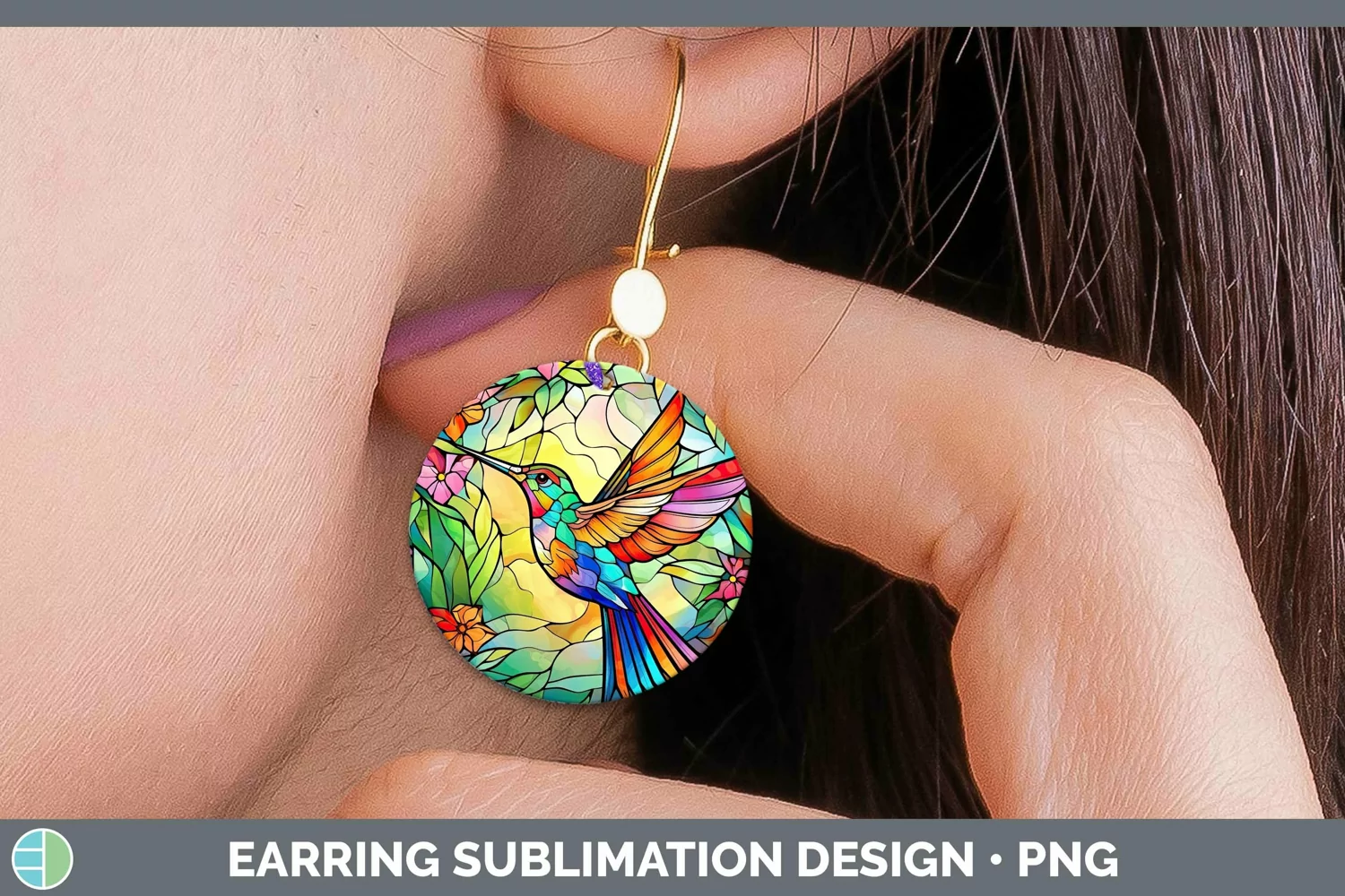 Stained Glass Bird Hummingbird Round Earrings Sublimation Ea