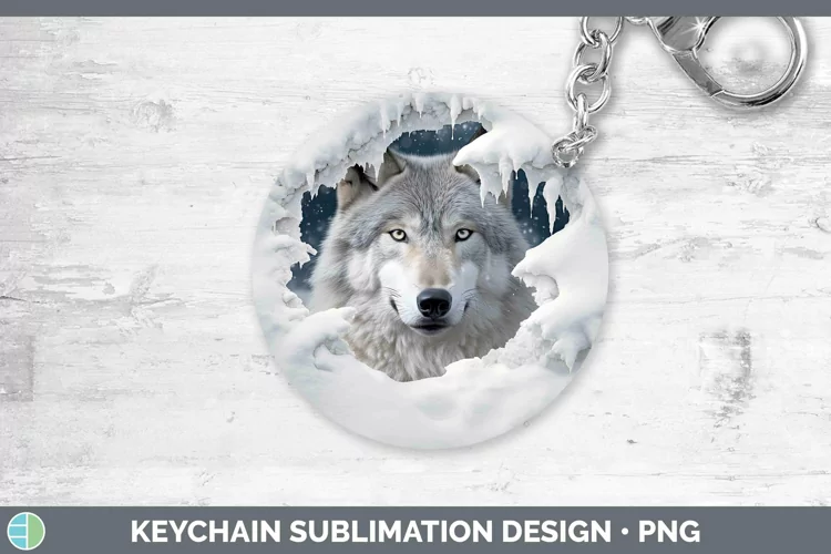 3D Winter Wolf Keychain Sublimation Keyring Designs