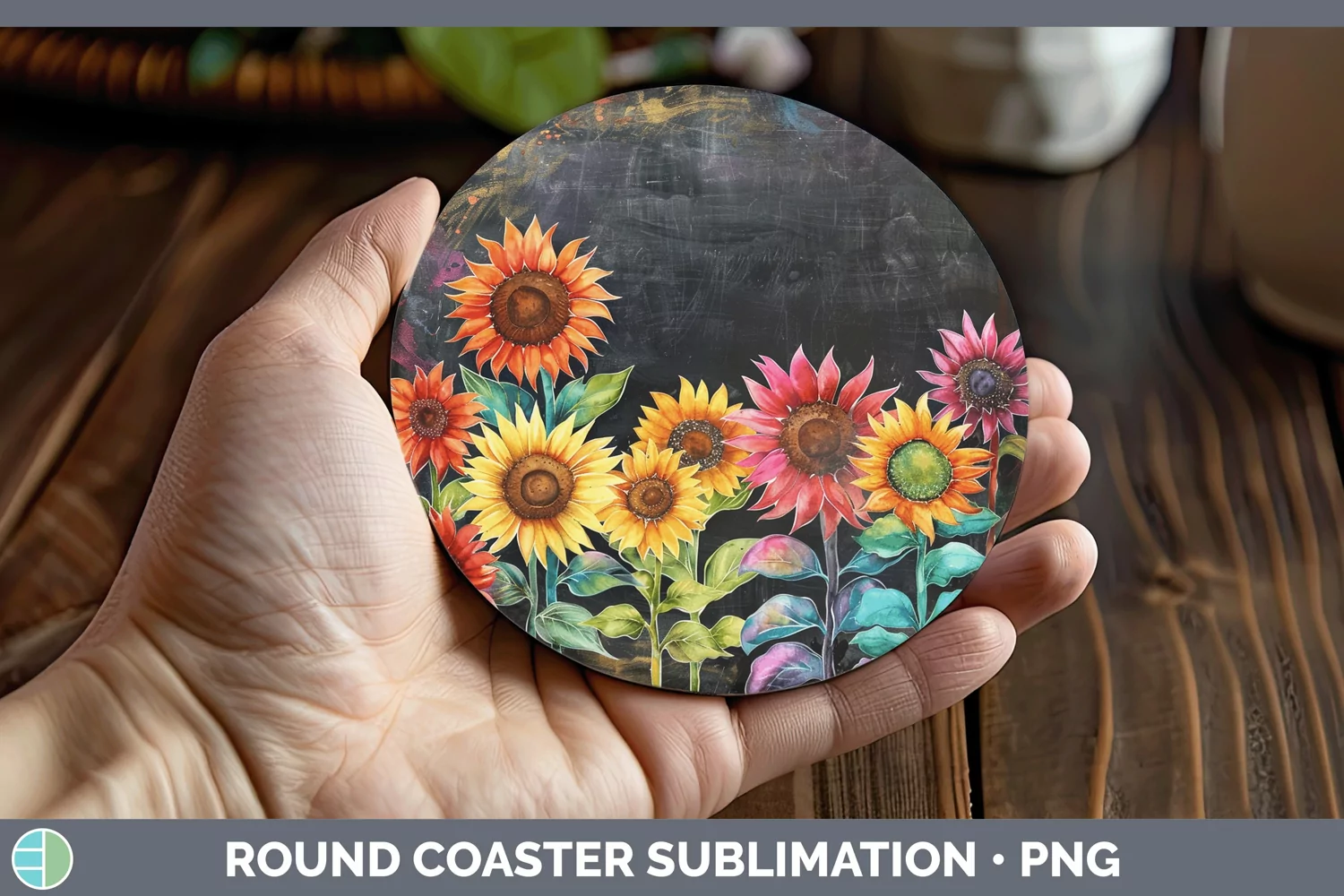 Similar Design Products to Chalkboard Sunflower Round Coaster Sublimation Coaster Desig