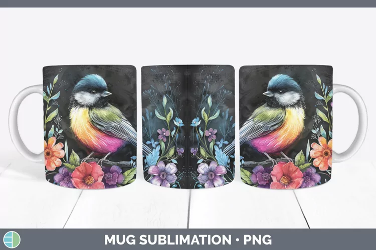 Chalkboard Chickadee Mug Wrap Sublimation Coffee Cup Designs