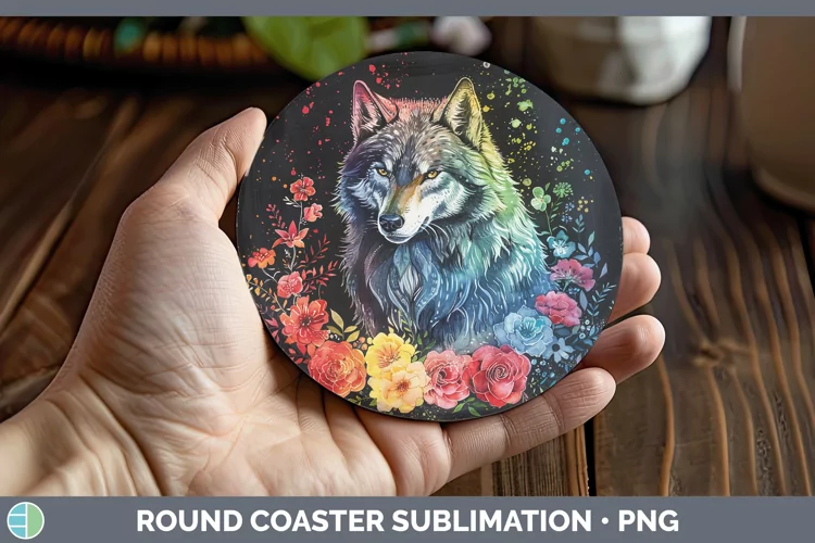 Chalkboard Wolf Round Coaster Sublimation Coaster Designs