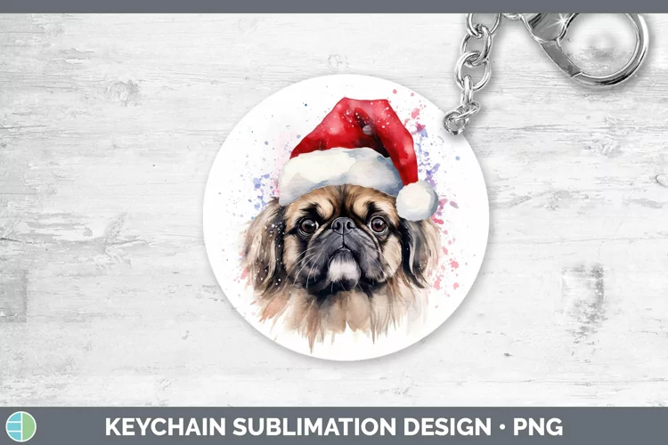 Dog Santa Hat Pekingese Keychain Sublimation Keyring Designs example image 1