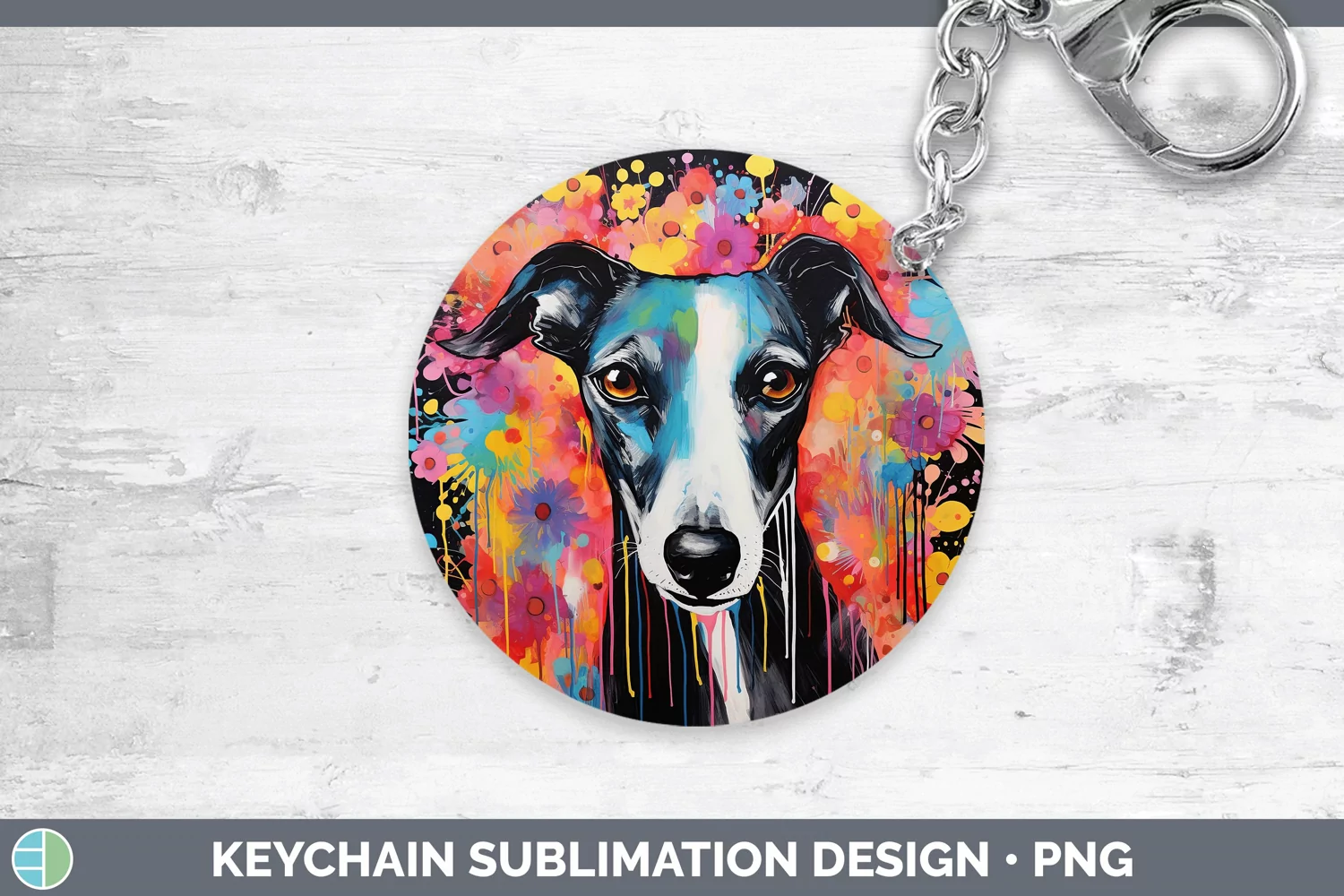 Neon Whippet Keychain Sublimation Keyring Designs
